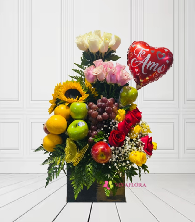 Arreglo Floral y Frutal con Globo