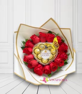 Bouquet de Rosas Rojas con Oso de Peluche y Ferrero Rocher